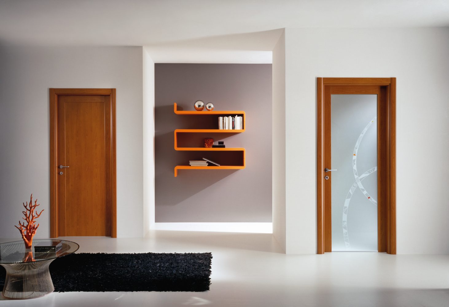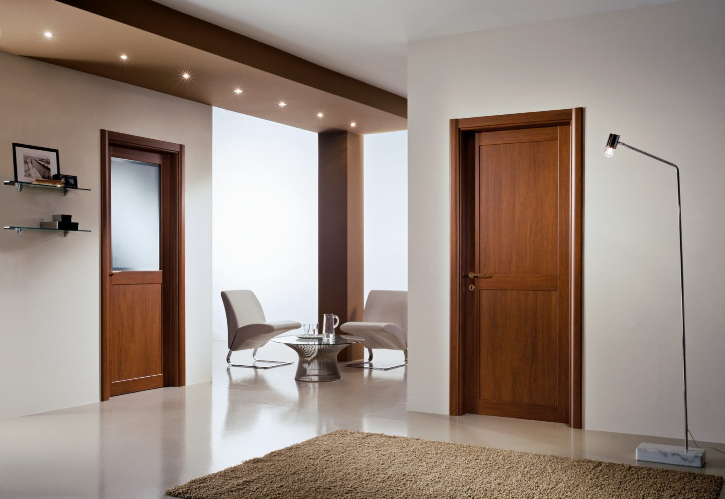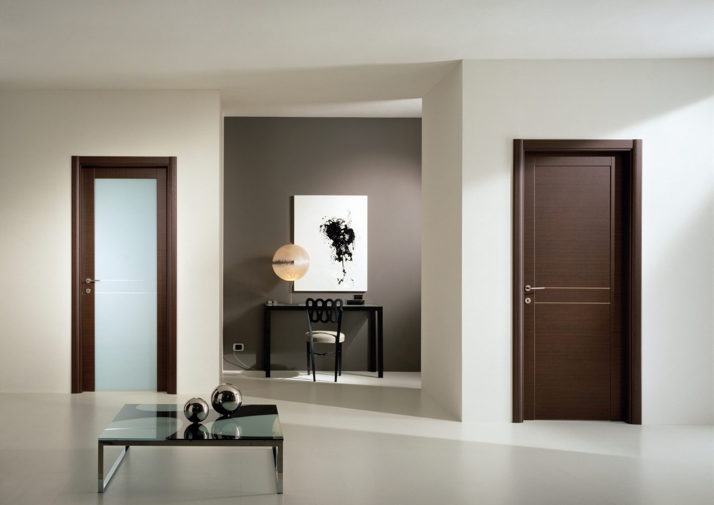 Genia è una reinterpretazione geniale di una porta tradizionale fatta di montanti, traverse e pannelli assemblati con precisione ed equilibrio. Dalla creatività di Fernando Garofoli, dalla sua interpretazione dei volumi, dall'originale orientamento della venatura, nasce una porta semplice ed elegante, dalla moderna linearità.
